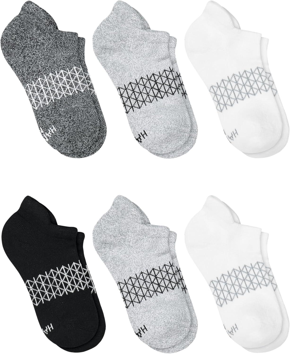 Hanes Boys’ Cushioned Ankle Socks (4-Pack)(No Show Tab – Grey/Black)