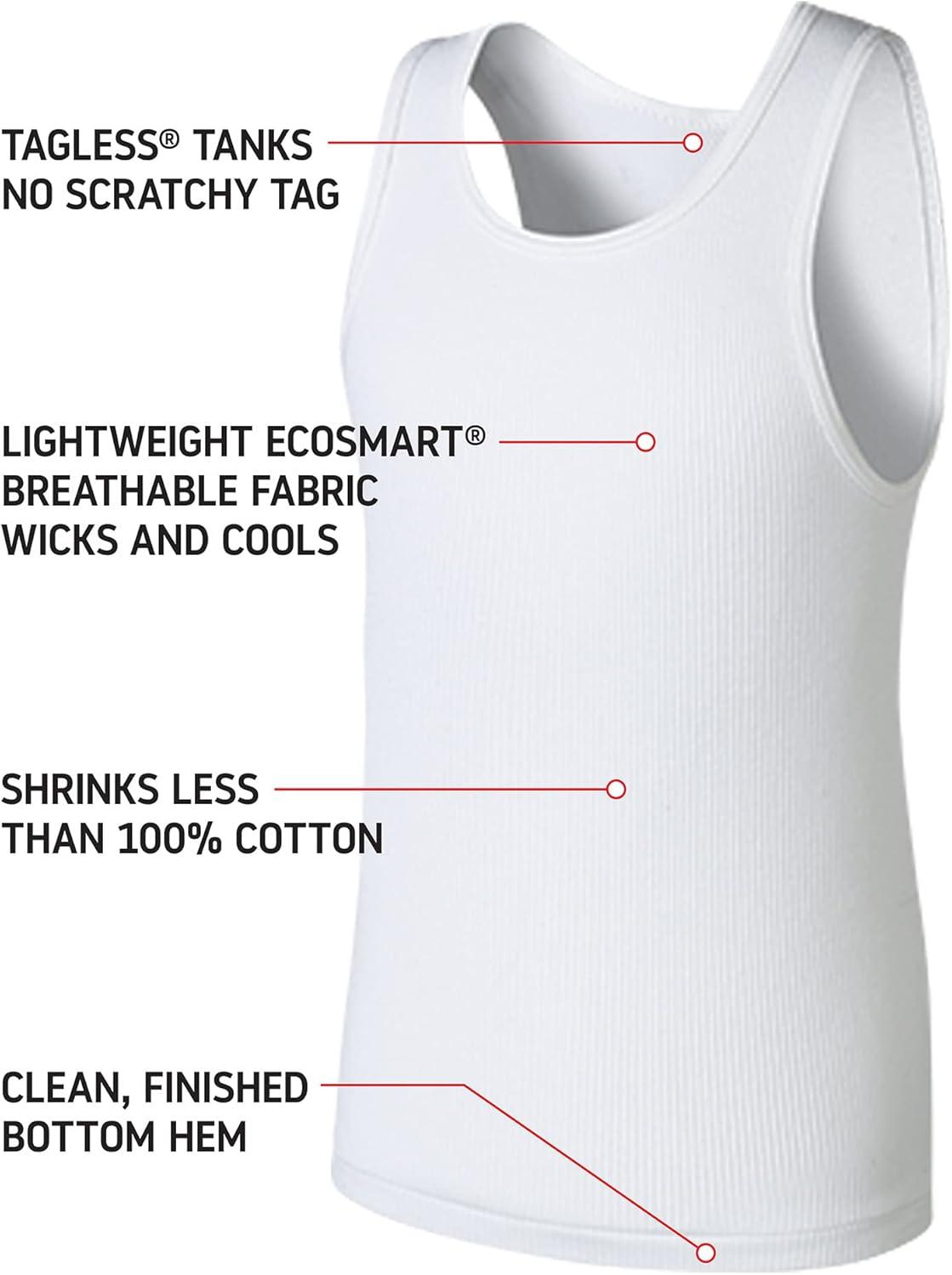 Hanes Boys’ Ecosmart Cotton Tank Undershirt 5-Pack(White – 5 Pack)