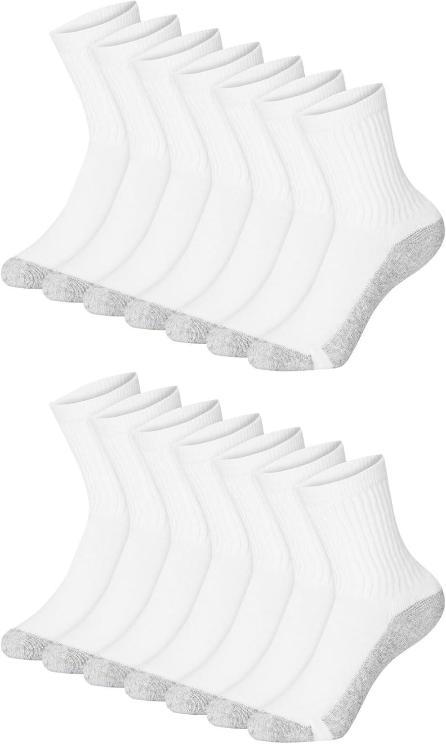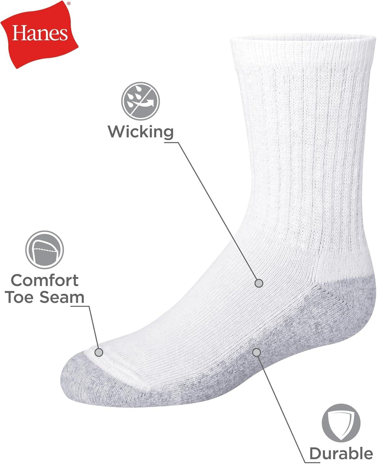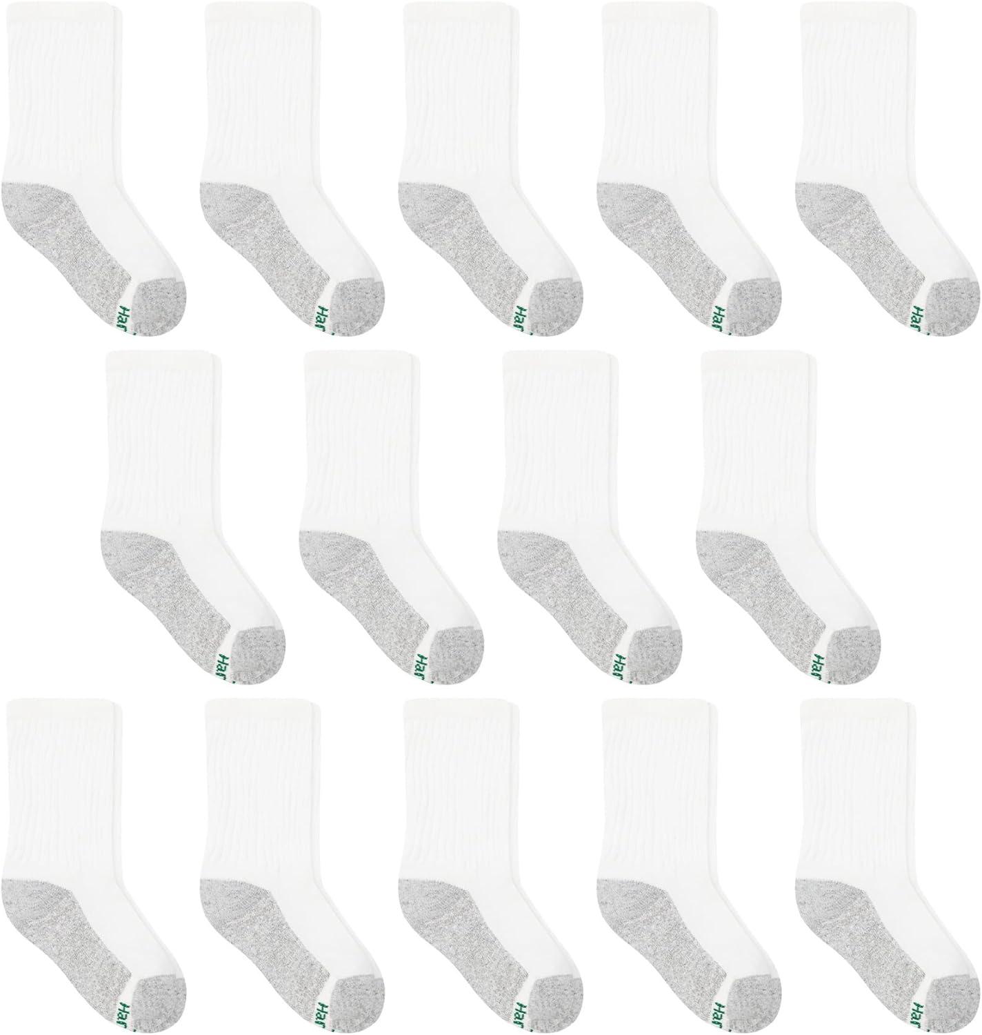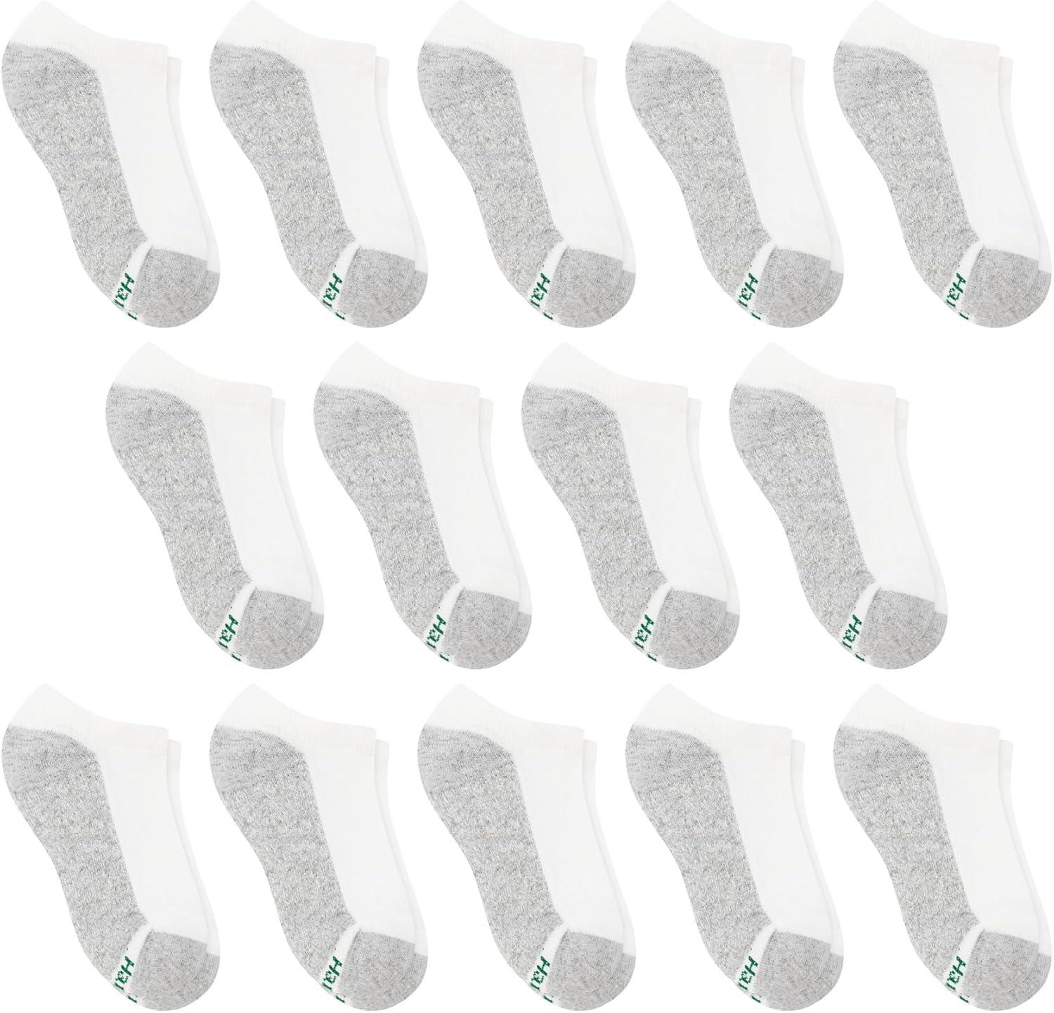 Hanes Boys Socks, Crew, Ankle, & No Show, Stretch-Cotton Socks, Moisture-wicking, Cushioned, 12 & 14 Packs, Black White(White – 14 Pack)
