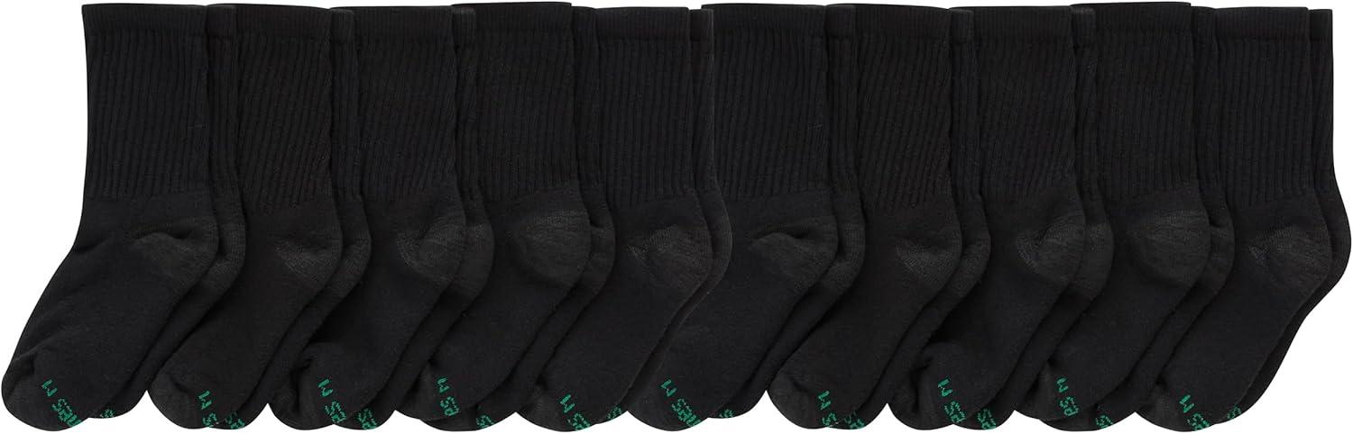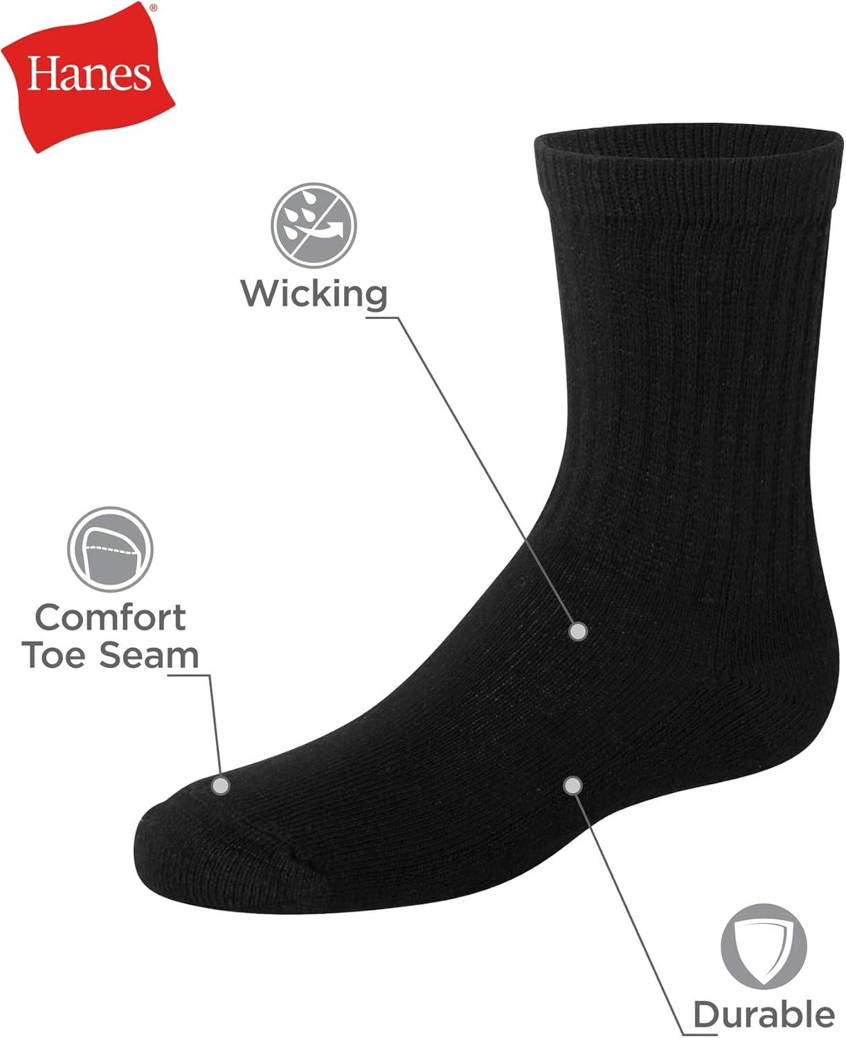 Hanes boys Uniform Crew Socks, Moisture-wicking Socks, Cushioned Foot Bottoms, 10-pairs(Black – 12 Pack)