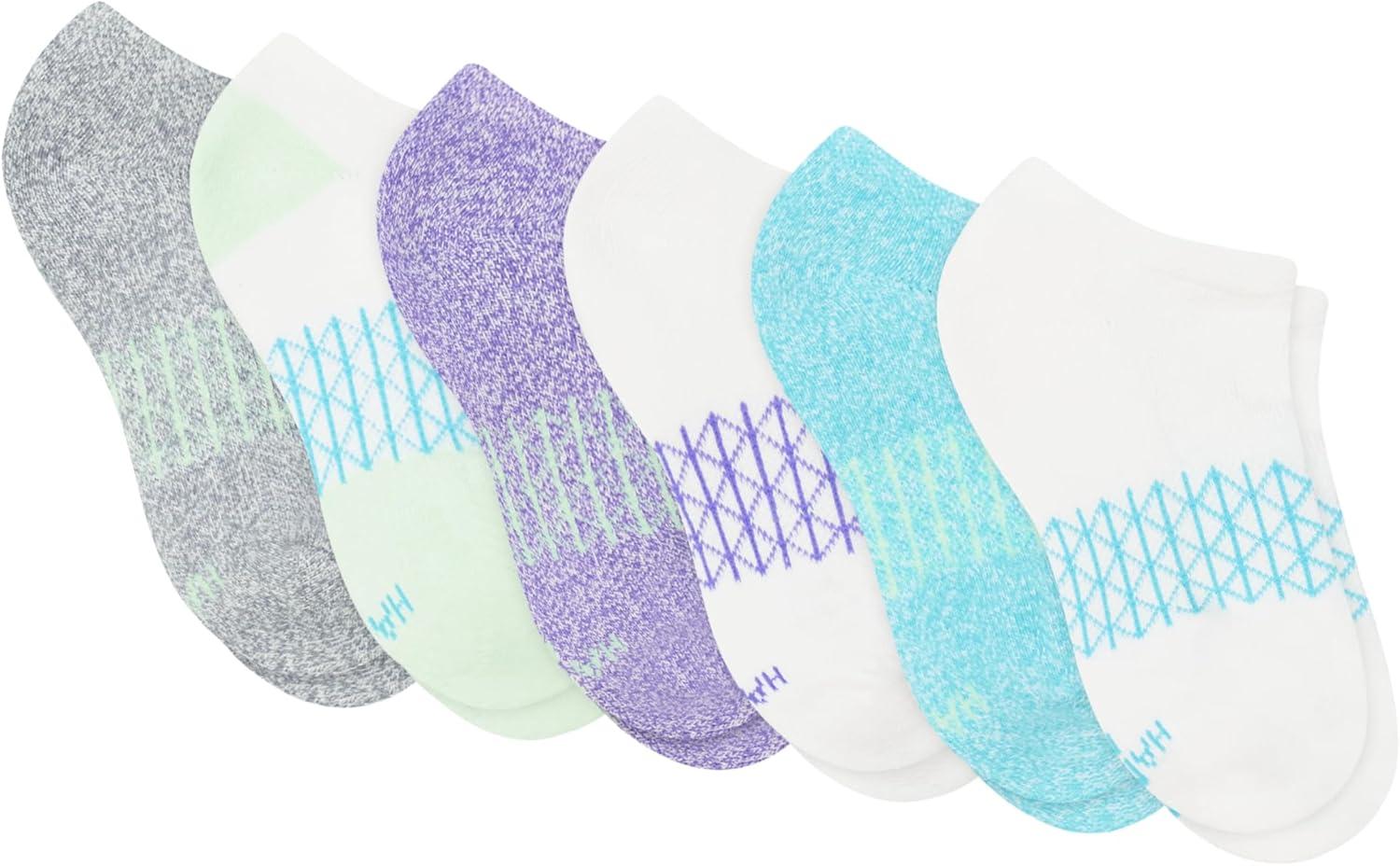 Hanes girls Ankle Socks Pack, 6 Pairs, Absolute Active Cushioned Ankle Socks for Girls, Heel Shield(No Show – White/Purple)