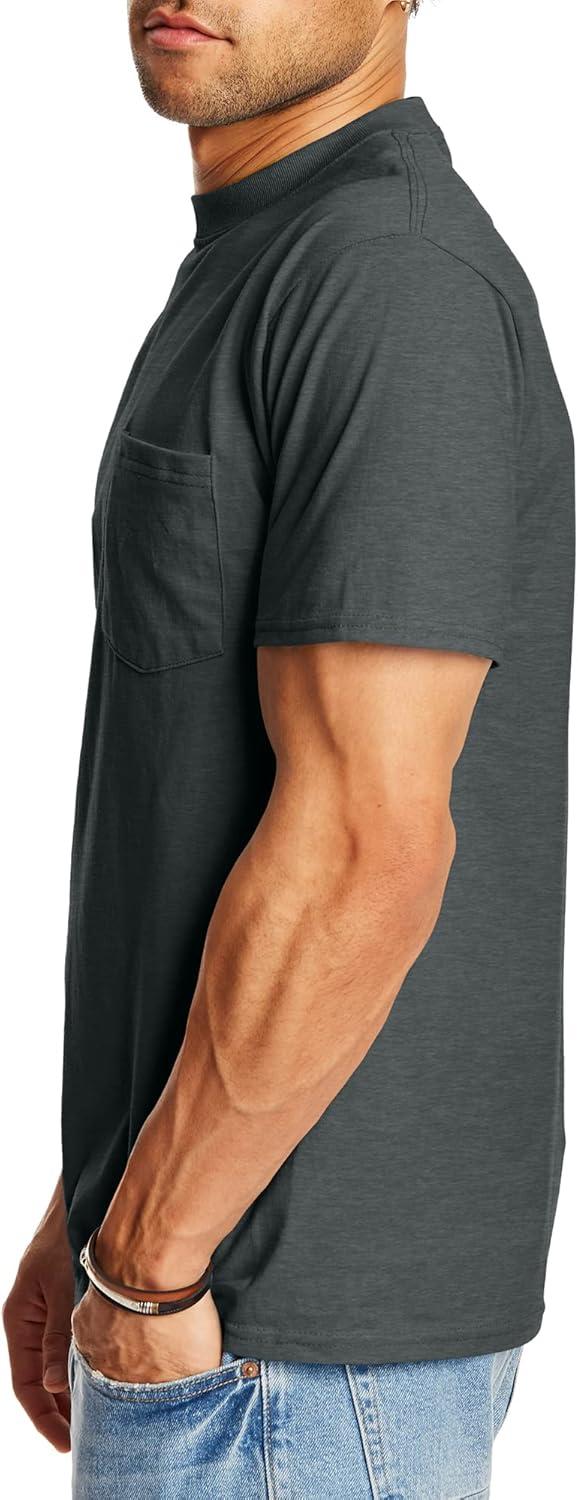 Hanes Mens Beefy-t Pocket, Heavyweight Cotton Pocket Tee for Men, Full-Cut T-Shirt, 1 Or 2 Pack(Charcoal Heather – 1 Pack)