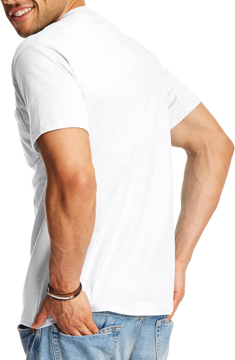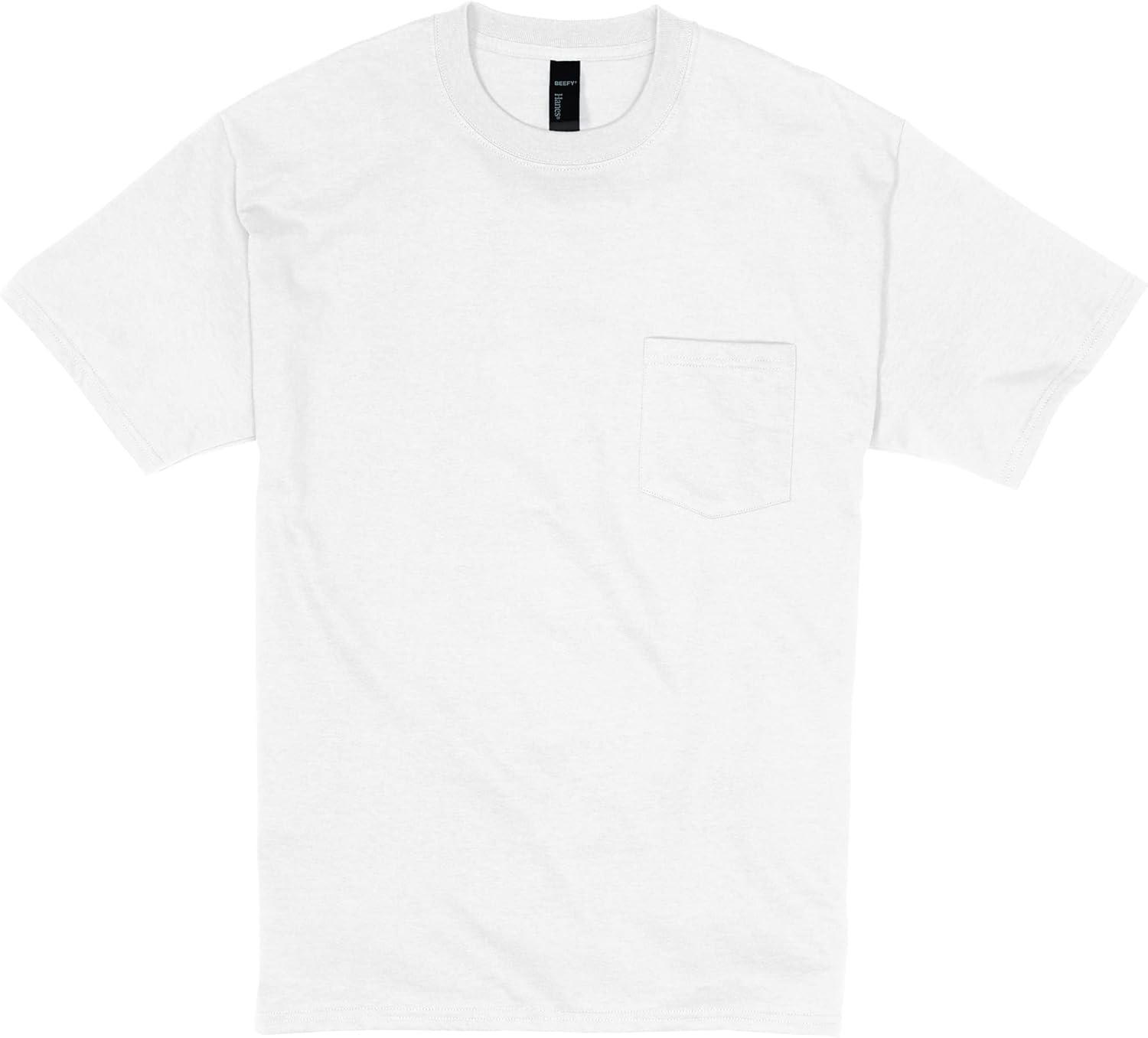 Hanes Mens Beefy-t Pocket, Heavyweight Cotton Pocket Tee for Men, Full-Cut T-Shirt, 1 Or 2 Pack(White – 1 Pack)