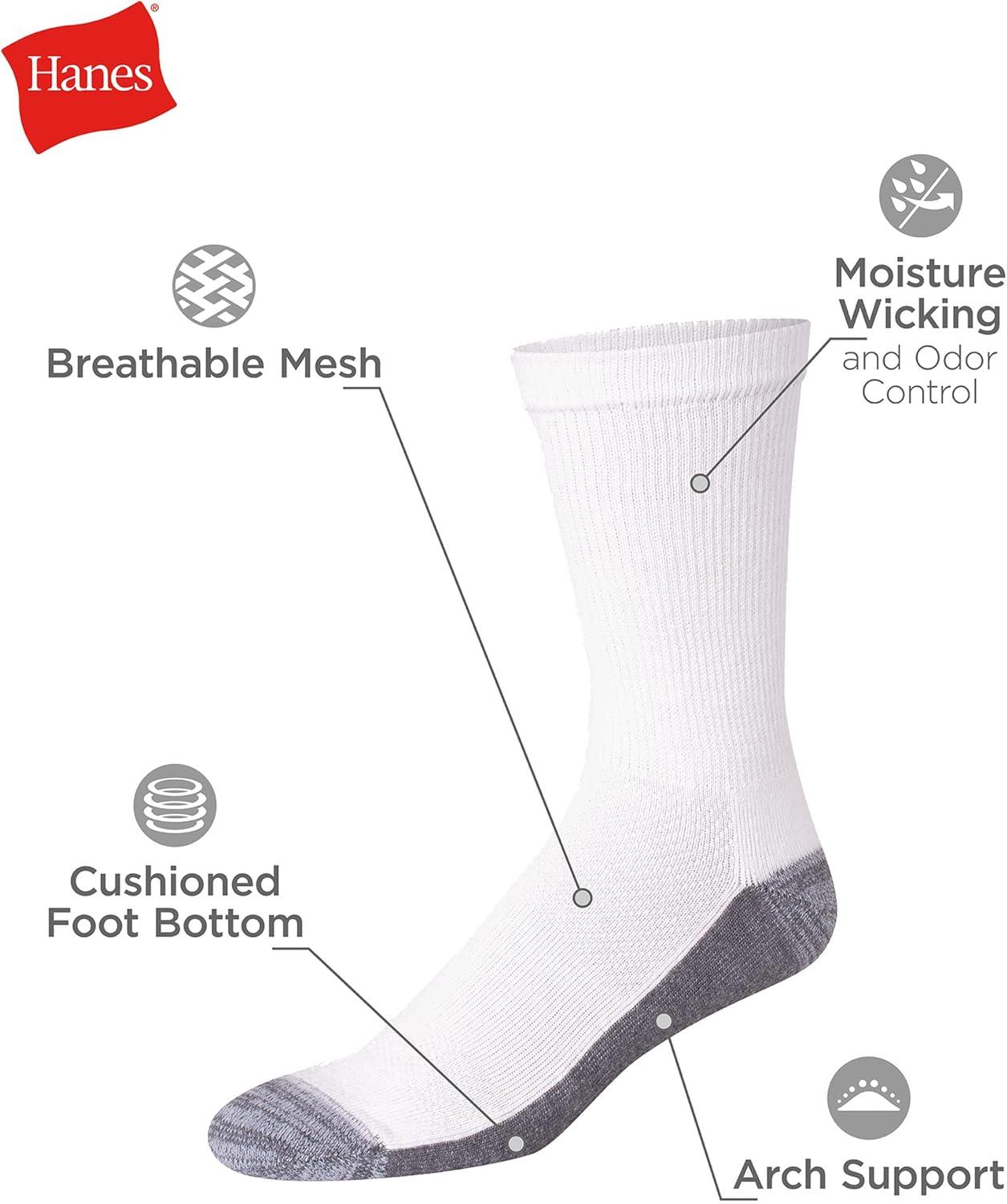 Hanes Men’s Big & Tall Crew Socks (12-Pack)(White – 12 Pack)
