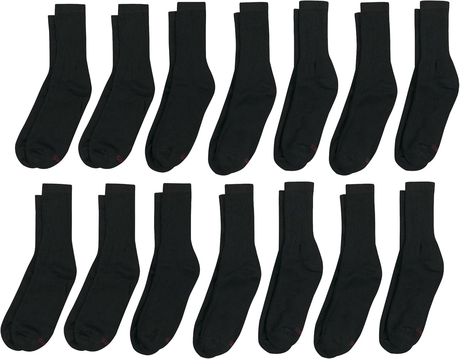 Hanes Men’s Double Tough Socks, Crew and Ankle Moisturing Wicking Socks, Black & White, Multi-Packs(Black – 14 Pair)