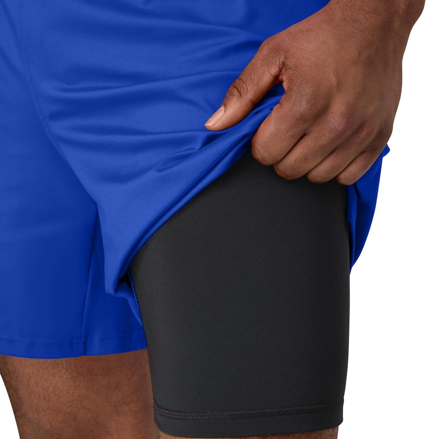 Hanes Mens Moves Workout Shorts with Boxer Brief Liner & Total Support Pouch, Moisture-Wicking Shorts, 7” Inseam(Deep Royal)