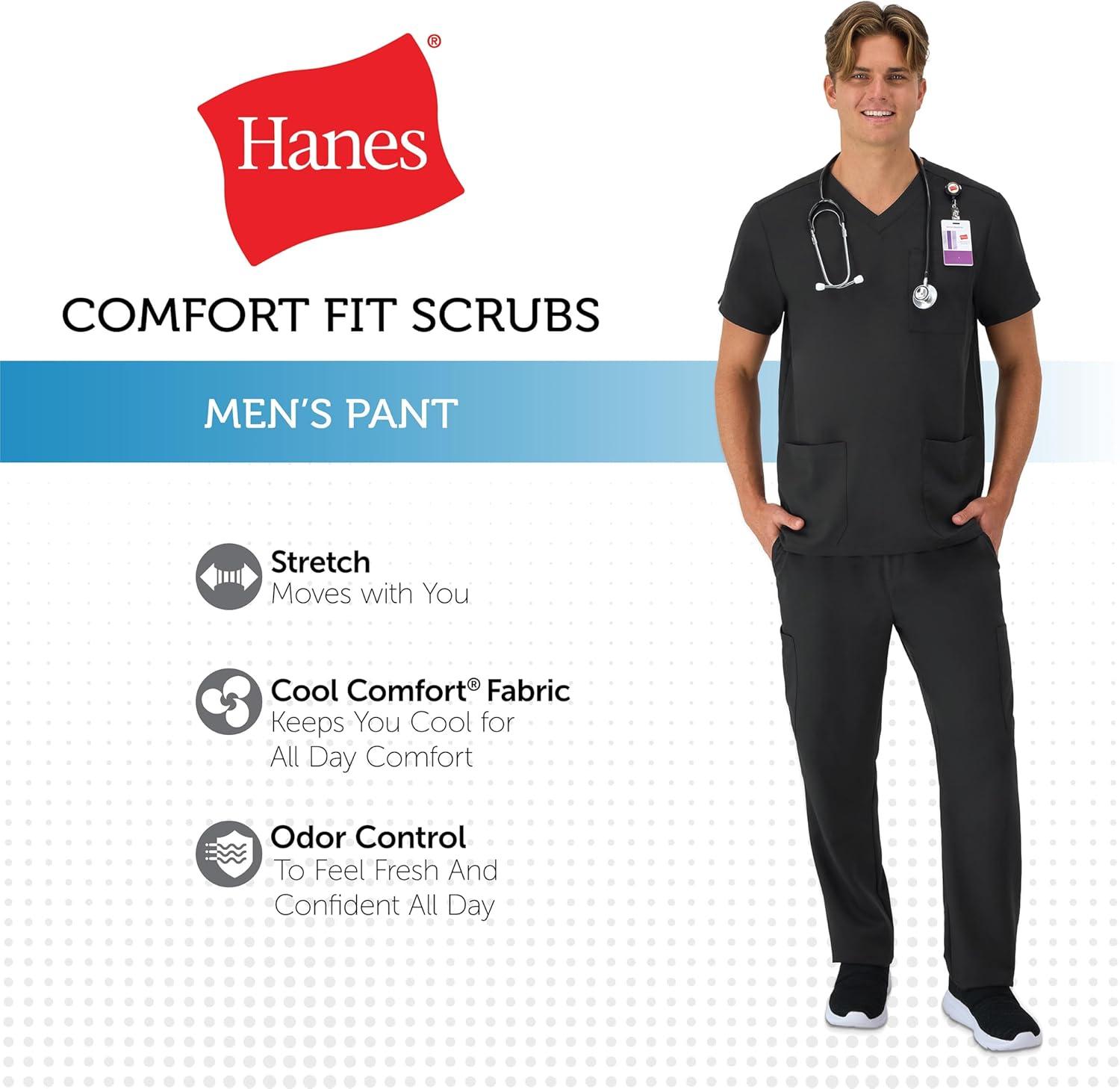 Scrubs that work as hard as you do. Hanes Comfort Fit Scrubs – a perfect blend of comfort, innovation, style, and value. These men’s scrub pants stretch comfortably in all the right places for enhanced flexibility to keep you going all day. You'll appreciate the variety of pockets that help you work your shift in ease. Pair these scrub pants with our scrub tops or jackets for a fit that’ll have you feeling great, no matter what your day may bring. Hanes Comfort Fit Scrubs – make yourself comfortable.
