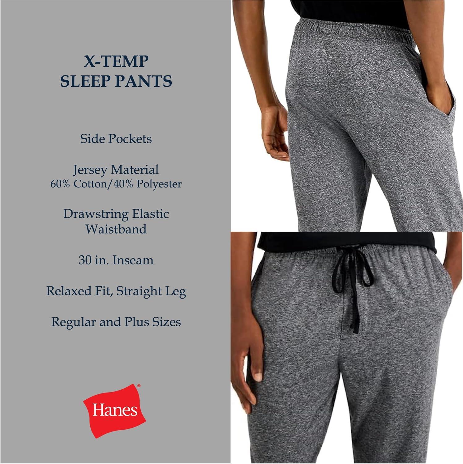 Hanes Men’s X-Temp Jersey Cotton Sleep Pajama Lounge Pants with Pockets, Pj Bottoms, Extended Sizes(Heather Grey)