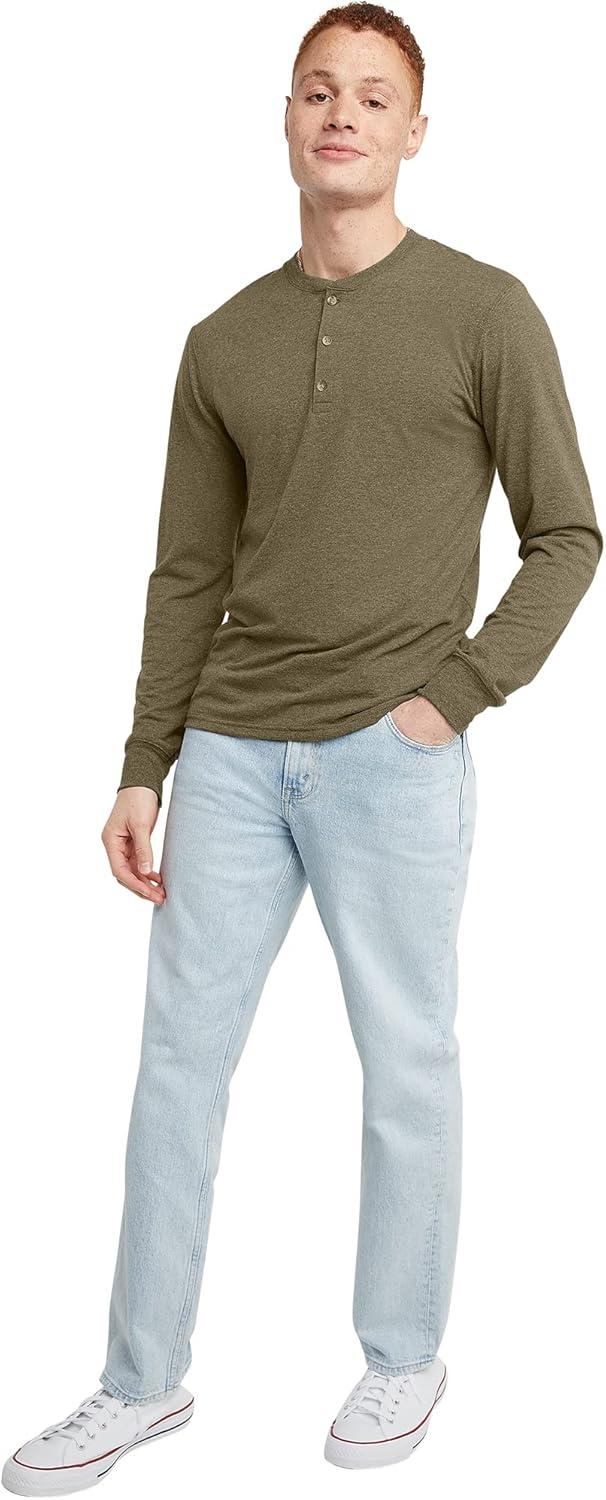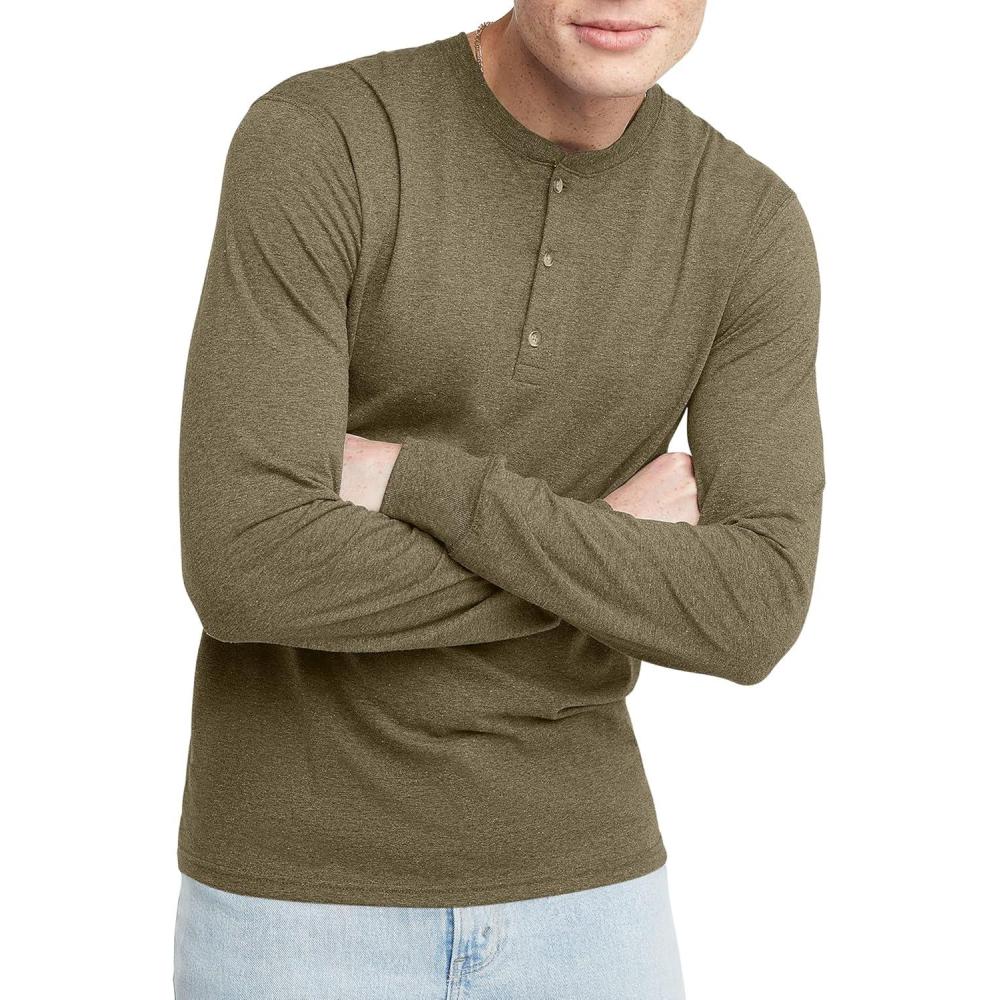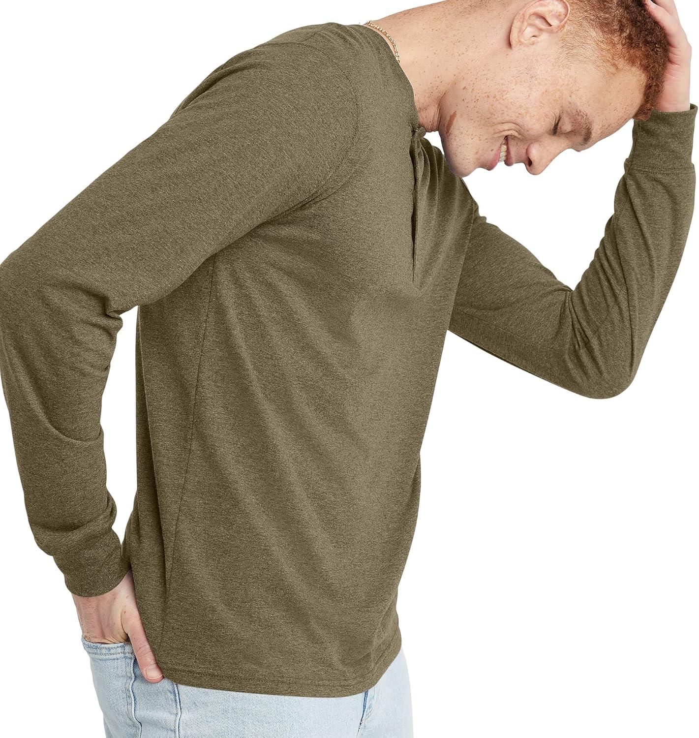 Hanes Originals Men’s Tri-Blend Long Sleeve Henley T-Shirt, Lightweight Long Sleeve Tee(Oregano Pe Heather)