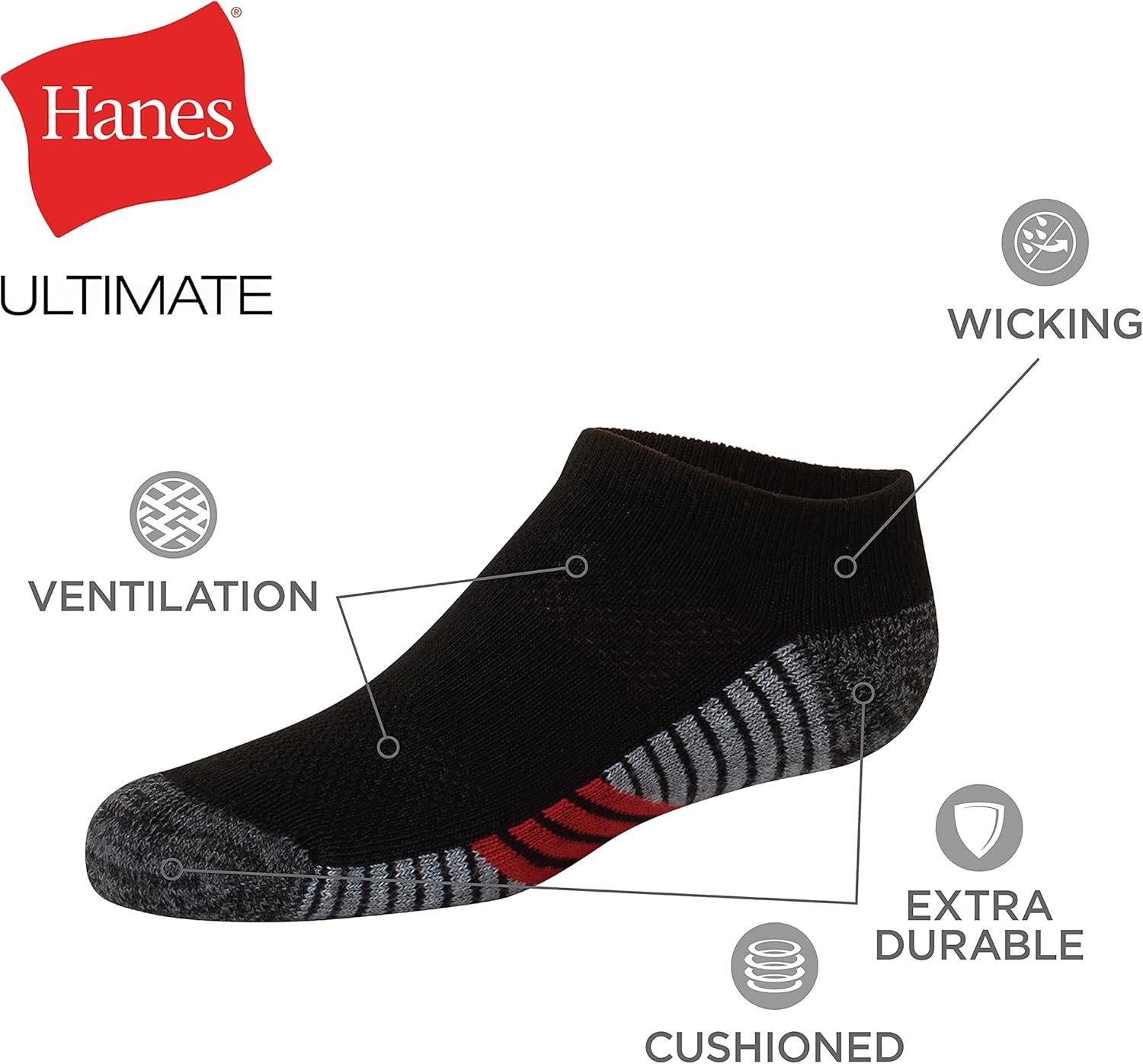 Hanes Ultimate Boys’ Ankle and No Show Performance Sport Socks, 10-Pair Packs(No Show – Black/Grey Bottom – 10 Pack)