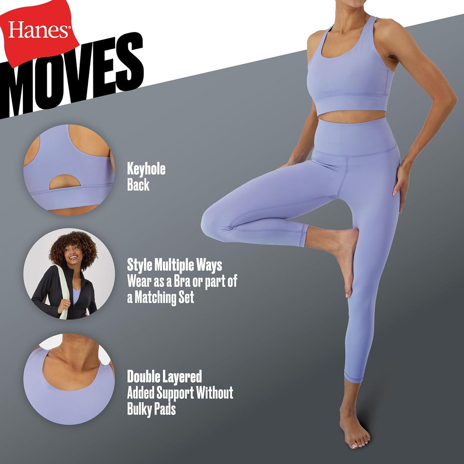 Hanes Womens Hanes Womens Sports Bra, Moves Racerback Crop Top Yoga Bras for Women, Stretch Sports Crop Top with Cutout, Wicking