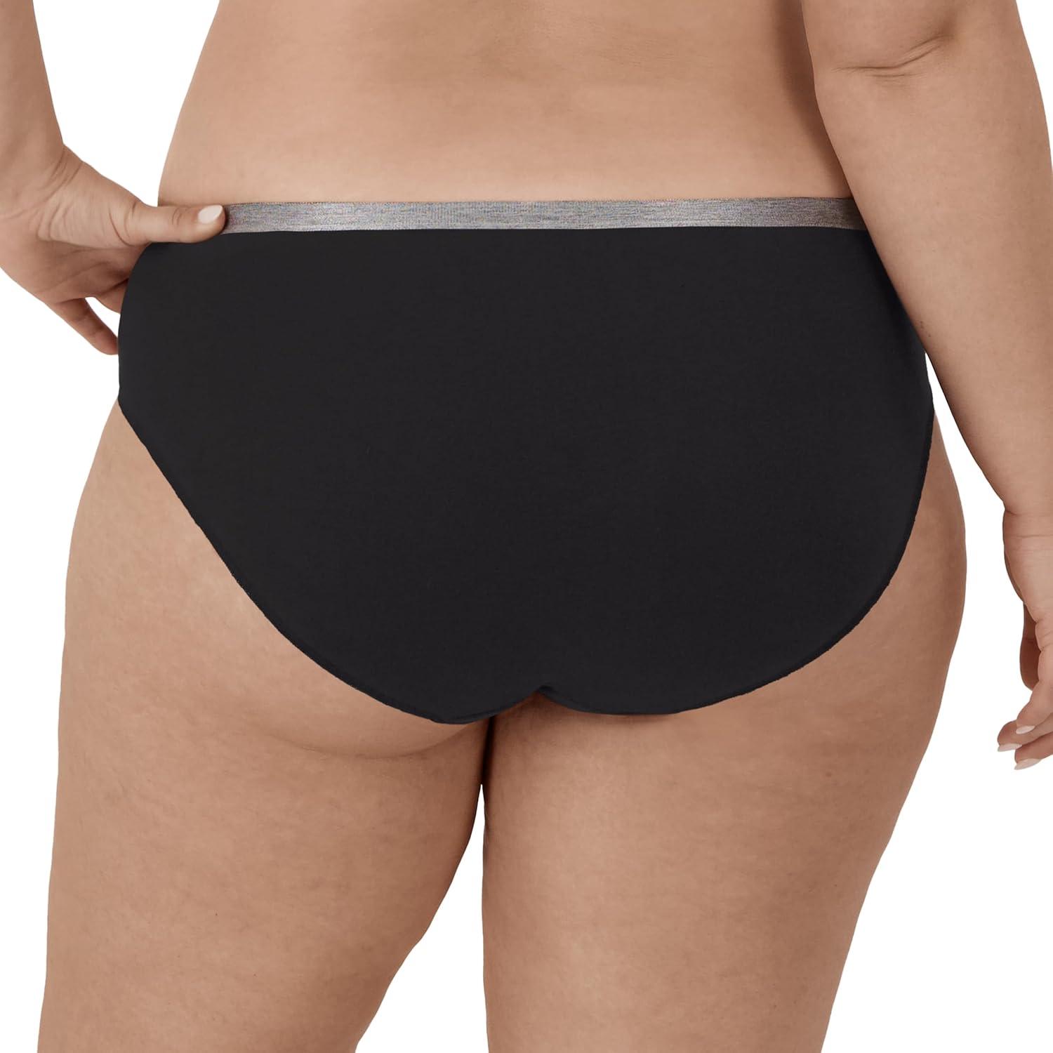 This soft and breathable women's brief underwear from the Hanes Just My Size collection delivers classic styling and total comfort. Crafted from a pre-shrunk cotton-rich fabric featuring a touch of stretch, it has a no-ride-up fit that allows you to move easily throughout the day. Practically invisible under clothes, this no-show underwear for women is finished with a Tagless interior – so there's no need to worry about annoying tags itching or bunching up. A brief cut, this women's underwear offers a high-rise silhouette with full front and back coverage. The best part? This women's brief underwear is available in a convenient assorted color 5-pack, giving you even more everyday options.
