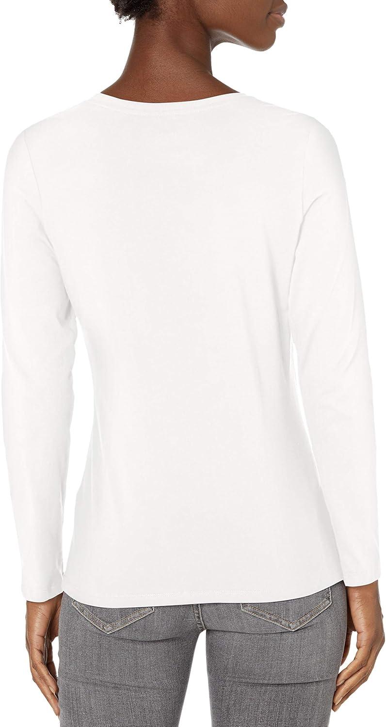 Hanes Womens Originals Long Sleeve Cotton T-Shirt, Lightweight Crewneck Tee, Modern Fit(White)