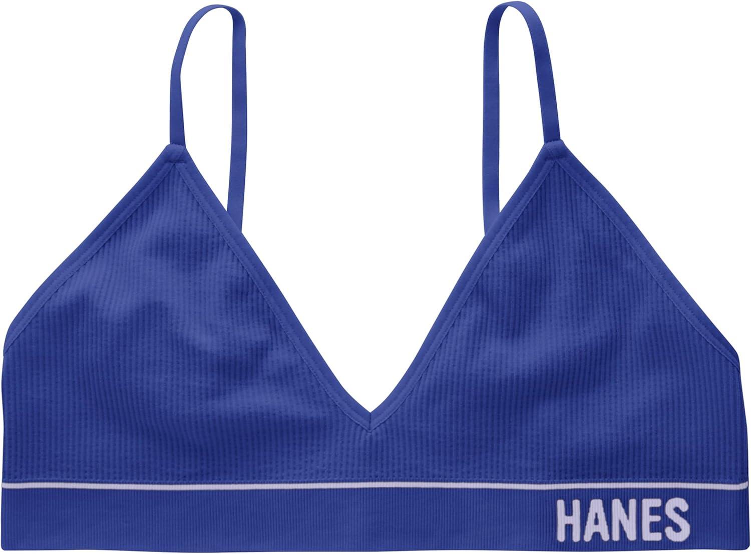 Hanes Women’s Originals Seamless Triangle Rib Bralette, Soft Ribbed Bras, ComfortFlex Fit Bra(Bright Violet Indigo)