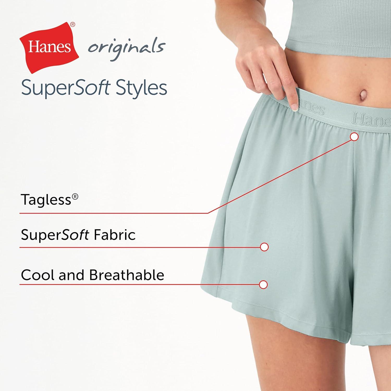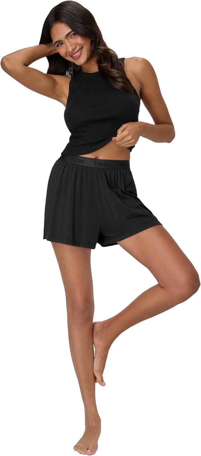 Hanes Women’s Originals Sleep Shorts, 2-Pack, Comfywear Supersoft Lounge Shorts Pack, 3.25″(Black/Cocoa Butter)
