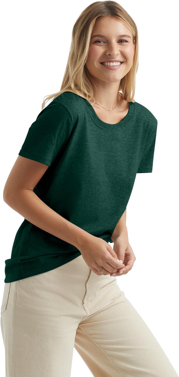 Hanes Women’s Perfect-T Crewneck T-Shirt, Lightweight Cotton Short Sleeve Tee for Women(Deep Forest)
