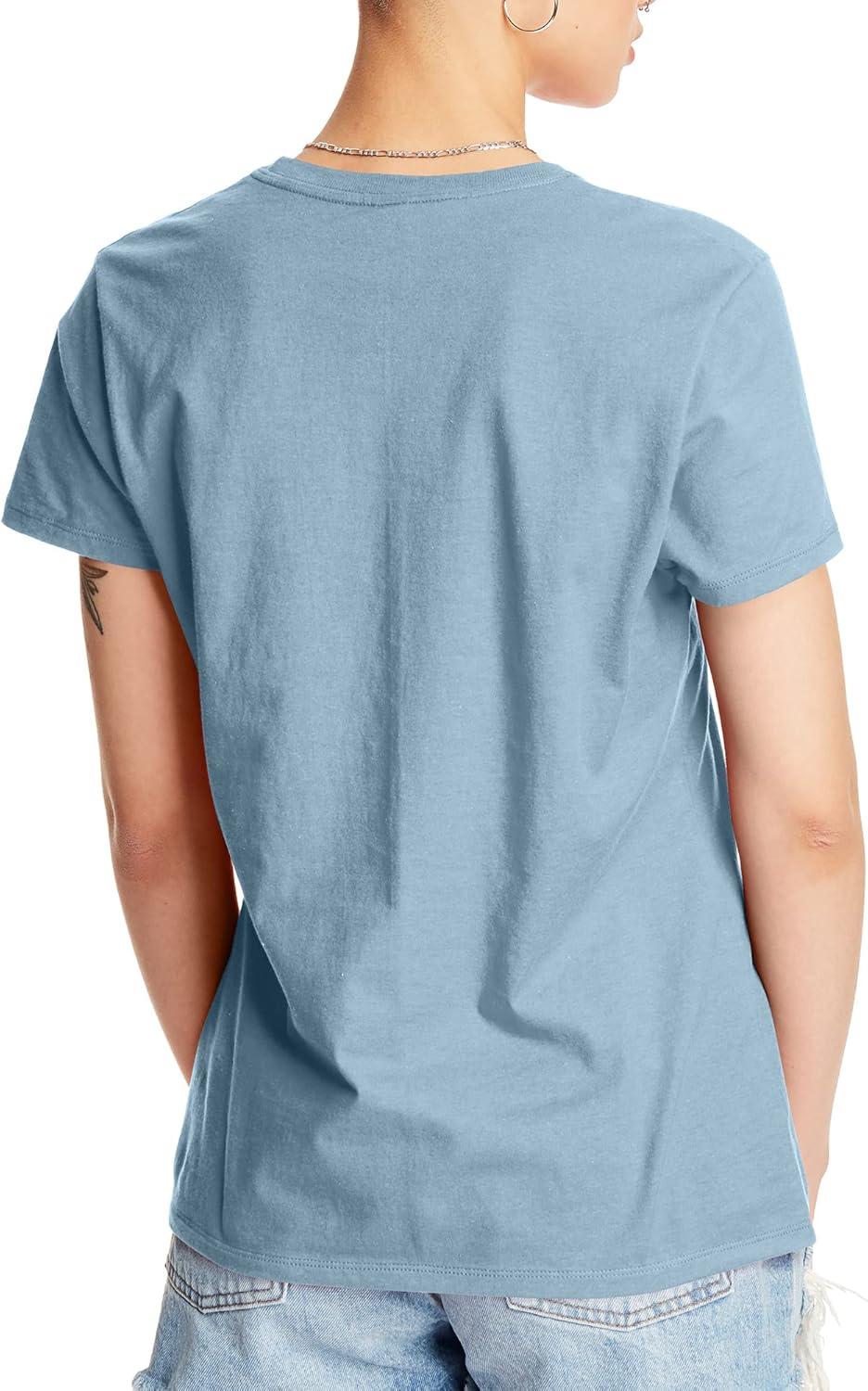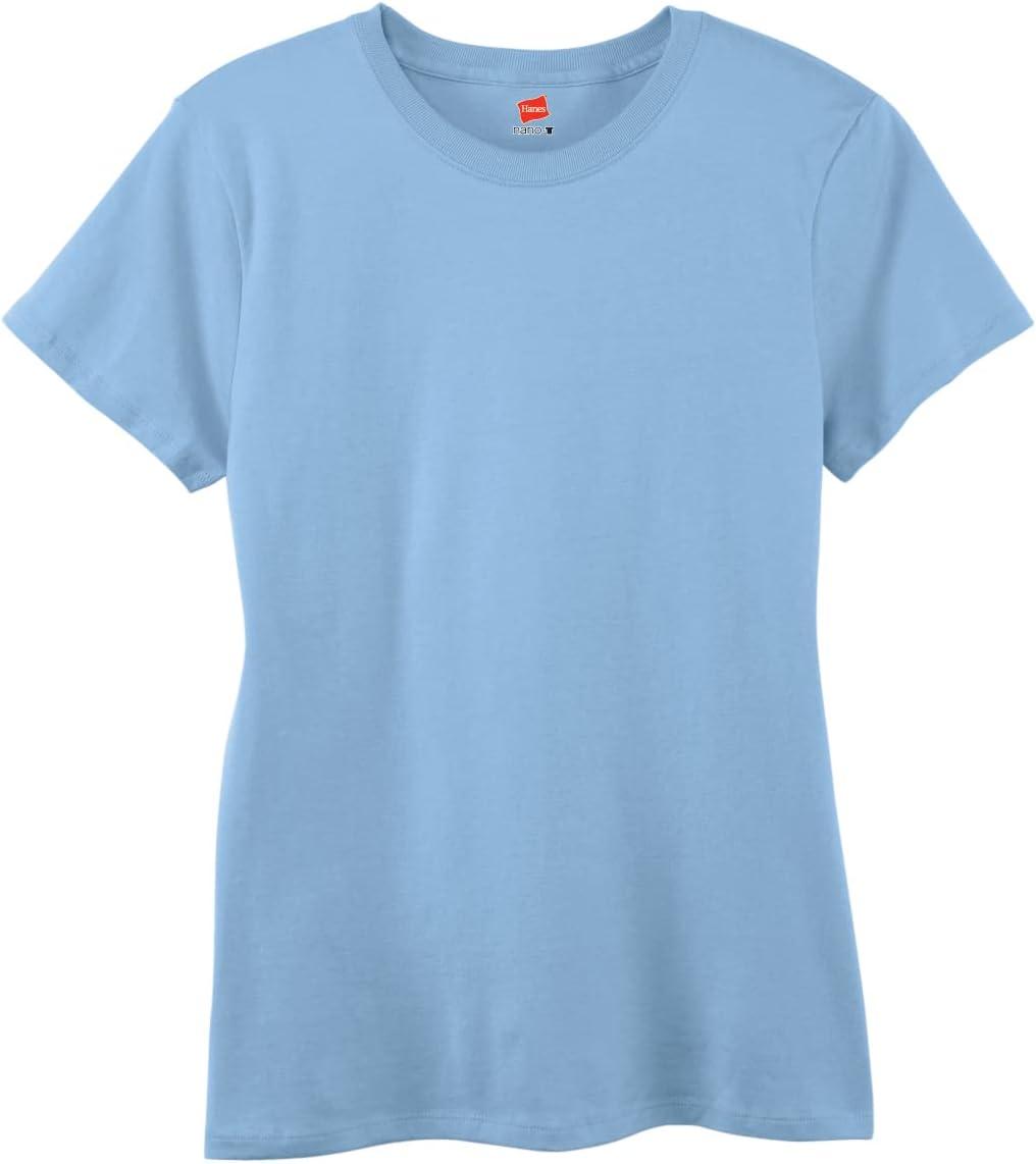 Hanes Women’s Perfect-T Crewneck T-Shirt, Lightweight Cotton Short Sleeve Tee for Women(Light Blue)