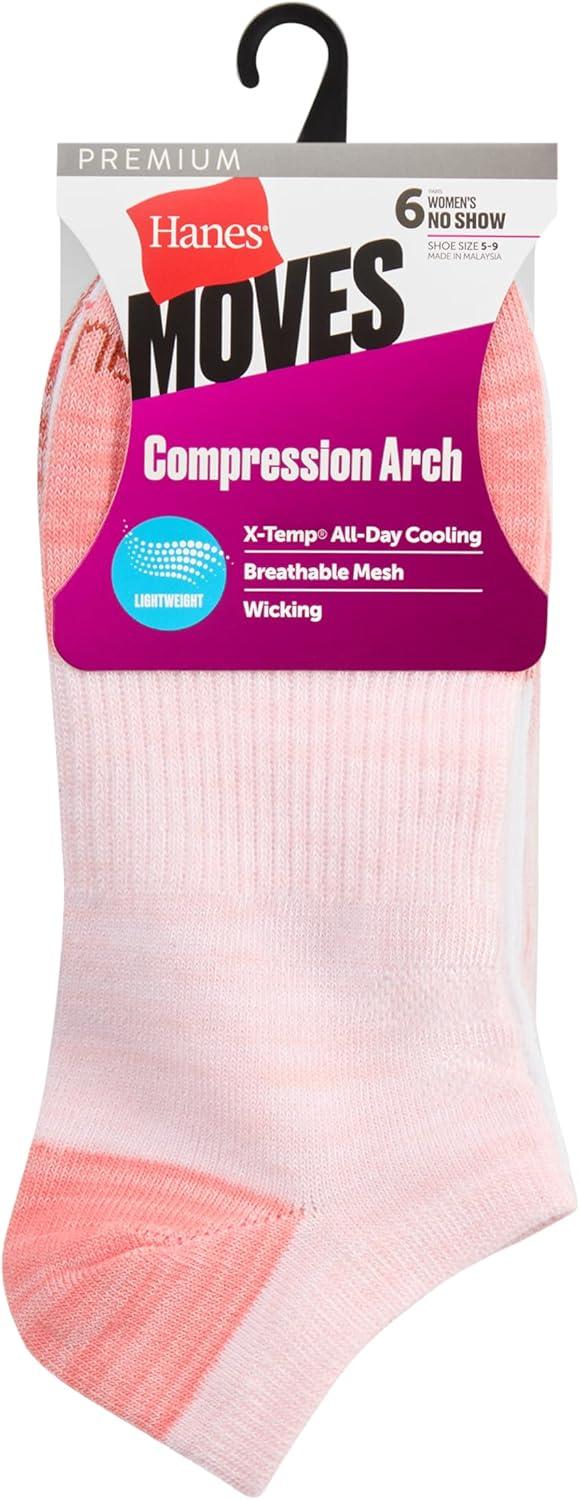 Hanes womens Performance No Show Socks, Lightweight X-temp Cooling Socks for Women, 6-pack(Copper)