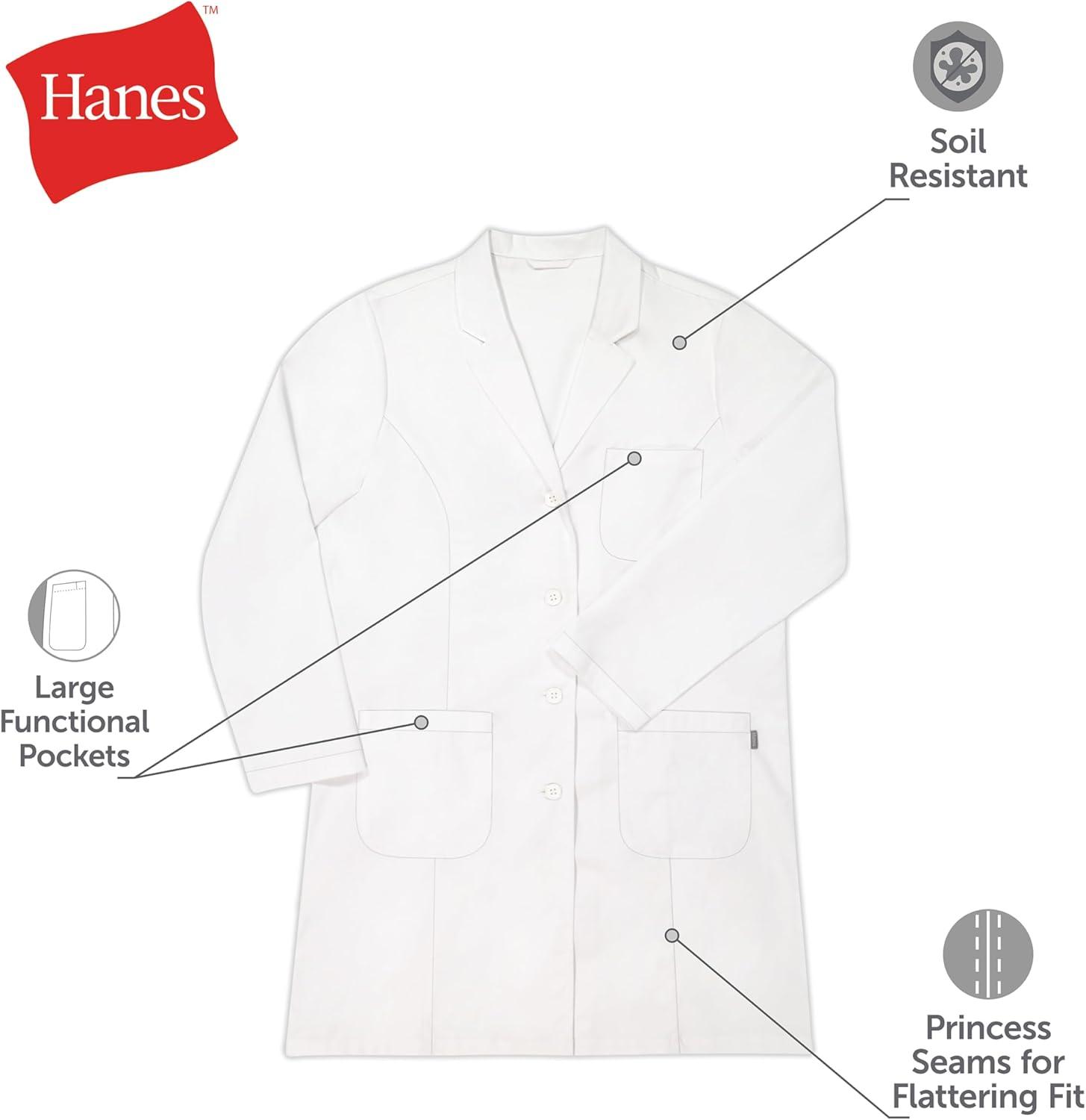 Hanes womens Scrubs Lab Coat, Healthcare Lab Coat, Scrubs Jacket With Pockets, Soil & Water Resistant(Marble White)
